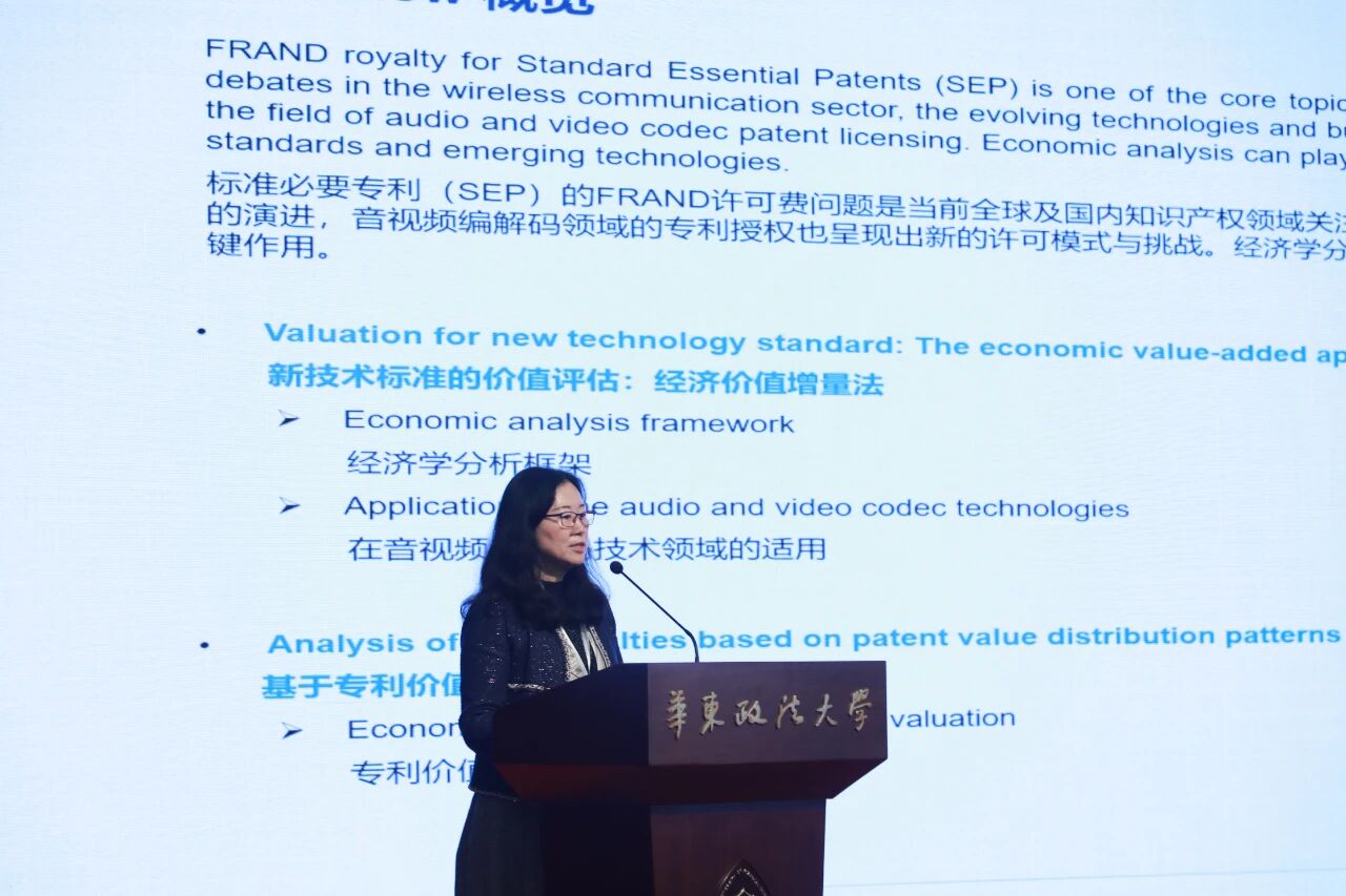 Dr. Yanhua Zhang, Executive Vice President at Compass Lexecon, presented several cutting-edge economic approaches to address one of the central issues in today’s intellectual property area: the determination of fair, reasonable, and non-discriminatory (FRAND) royalty rates for standard essential patents (SEPs). Dr. Zhang highlighted the potential use of the economic value-added approach for evaluating SEPs associated with new technologies and standards. This approach assesses the value of SEPs by comparing the economic value with and without the adoption of the new standard. She also explored the applicability of this approach in areas such as audio and video codec standards. In addition, Dr. Zhang introduced methods for valuing specific patents or patent portfolios of SEPs by incorporating the distributional characteristics of patent value.
