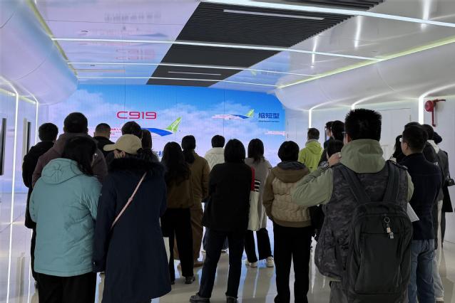 在工作人员引导下,教职工依次参观大飞机产业链全景图、客户选型中心,一组组震撼数据、一幅幅生动图片,系统呈现了国产大飞机发展历程与产业全景,展示了从设计、研发、制造到集成的完整工业流程,让大家对我国自主研制的航空体系有了更加立体、深刻的认识。