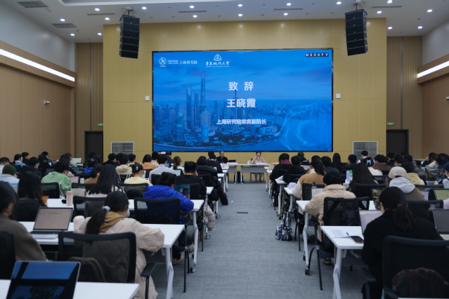 王晓霞致辞介绍,上海研究院自2015年建院以来,聚焦四大核心领域、强化七大功能,致力于打造高水平综合性智库,期待讲座能够启迪智慧、凝聚共识,希望通过此类学术活动,深化院校合作,为推进国家治理现代化与法治体系建设贡献力量。