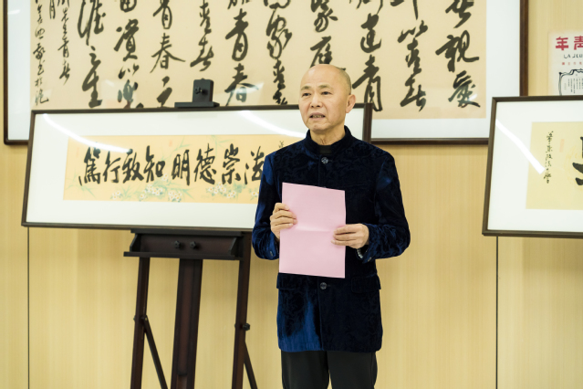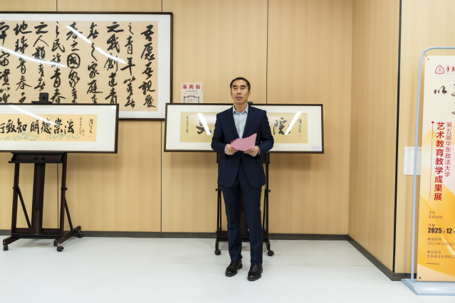陈志宏为美育展致辞。他认为美育是“审美教育”与“情感教育”的融合,其目标在于启迪人们感知美、欣赏美、创造美;美育能丰富情感世界、开阔精神境界,培养想象力与创造力,更能塑造“向美而行”的生活态度,提升幸福感与生命品质。他对学校在美育工作上的坚持与成效给予高度赞扬,呼吁让美育惠及更多师生,成为教育与生活的核心。