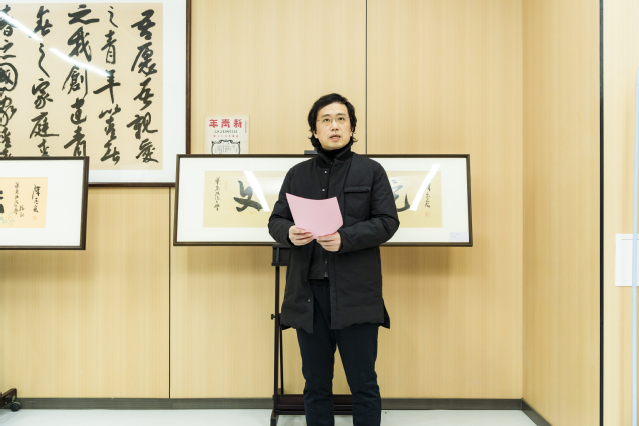 文伯书院艺术教育中心陶大珉老师介绍策展情况。他表示,本届展览相较于往届实现了多重突破。场地方面,从楼宇融合展示升级为独立完整的专业空间;展陈设计上,首次使用展墙搭建,从空间规划、灯光布置到画作装裱设计均精心打磨;展品方面,以陈志宏老师和华师大师生书法交流为契机,集中呈现经典白描艺术、现代绘画实践、摄影创意实践等多门美育课程的教学成果,让不同艺术媒介在同一美育语境下实现深度对话。他认为,美育展不仅是一场关于课程的展示和艺术交流,更是通过展览的的再次创作,形成一个具有丰富视觉层次的“美育现场”。