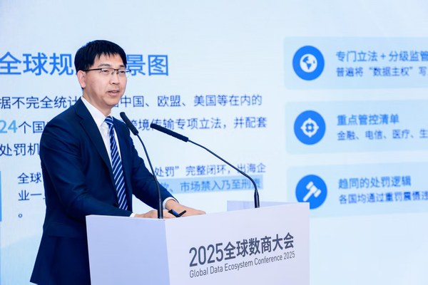 11月25日,2025全球数商大会“数字出海 智启新程”主题论坛在上海国际会议中心举办。论坛活动由长宁区数据局主办,上海数据集团、中国信通院上海工创中心、飞书深诺支持。上海市数据局副局长钱晓,长宁区委常委、副区长陆浩,我校副校长、中国法治化营商环境研究院院长罗培新,以及相关负责人、行业专家、企业代表等出席活动。