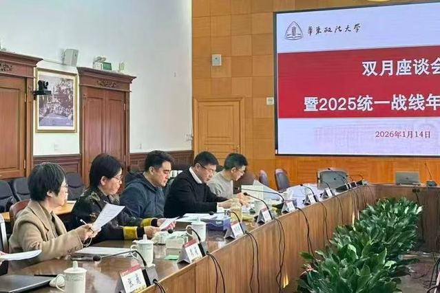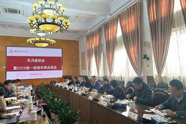 1月14日中午,我校双月座谈会暨2025年度统一战线年终总结会在长宁校区举行。校党委书记王宏舟,副校长洪冬英,校党委常委、统战部部长曲玉梁,统战部副部长周莉出席会议,学校各民主党派、统战团体负责人,以及各级人大代表、政协委员共同参会。会议由校党委副书记韩强主持。