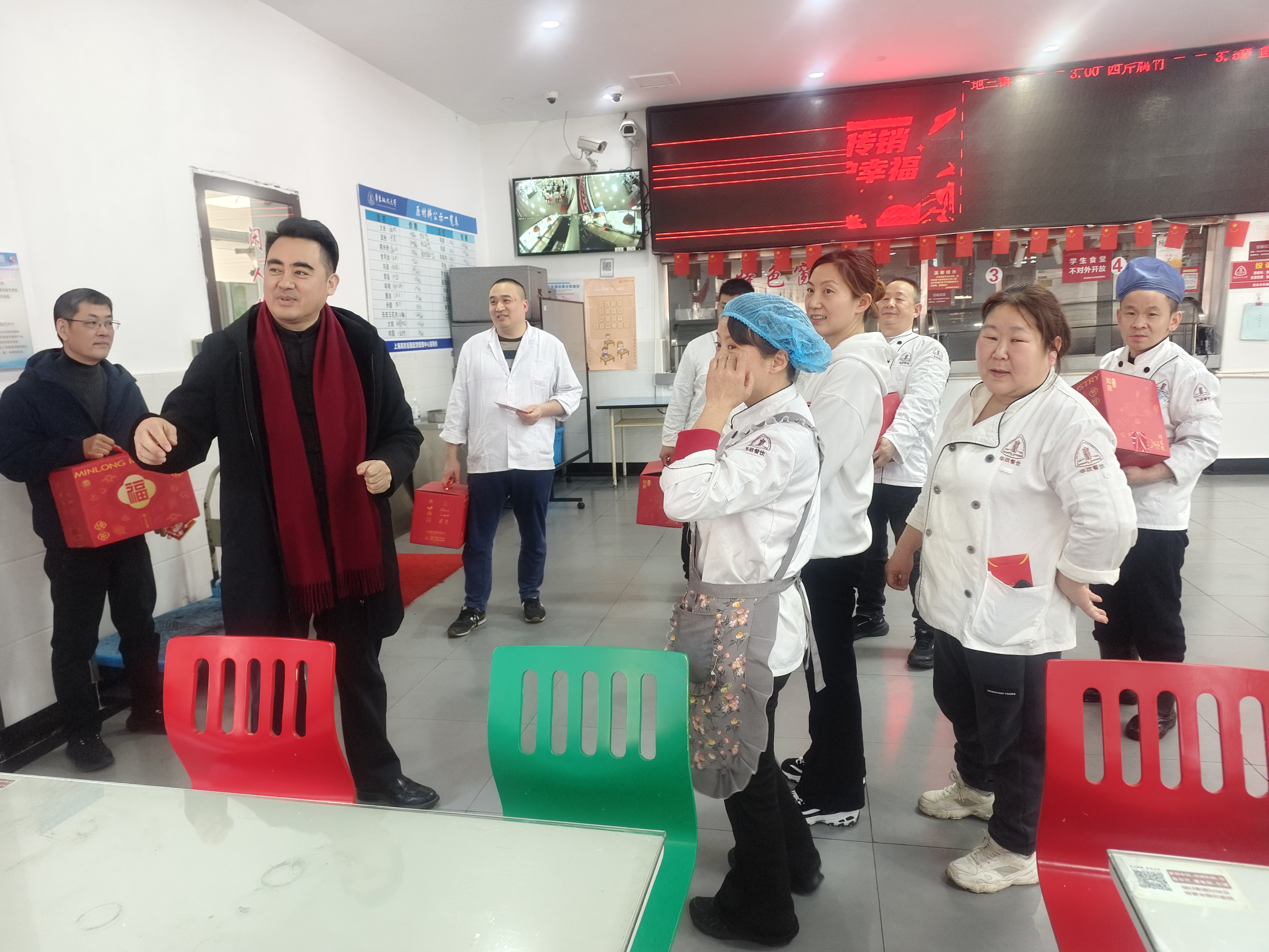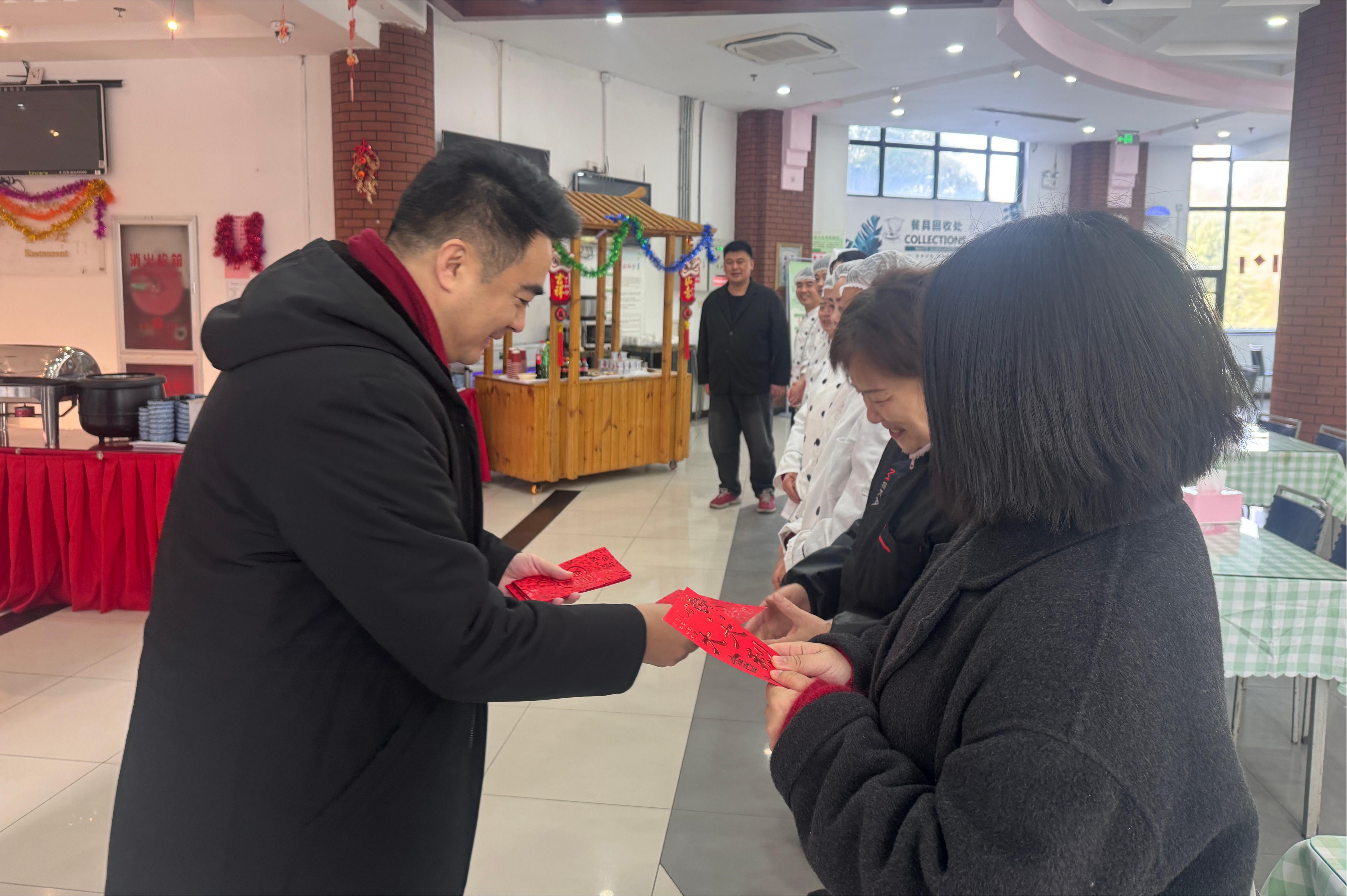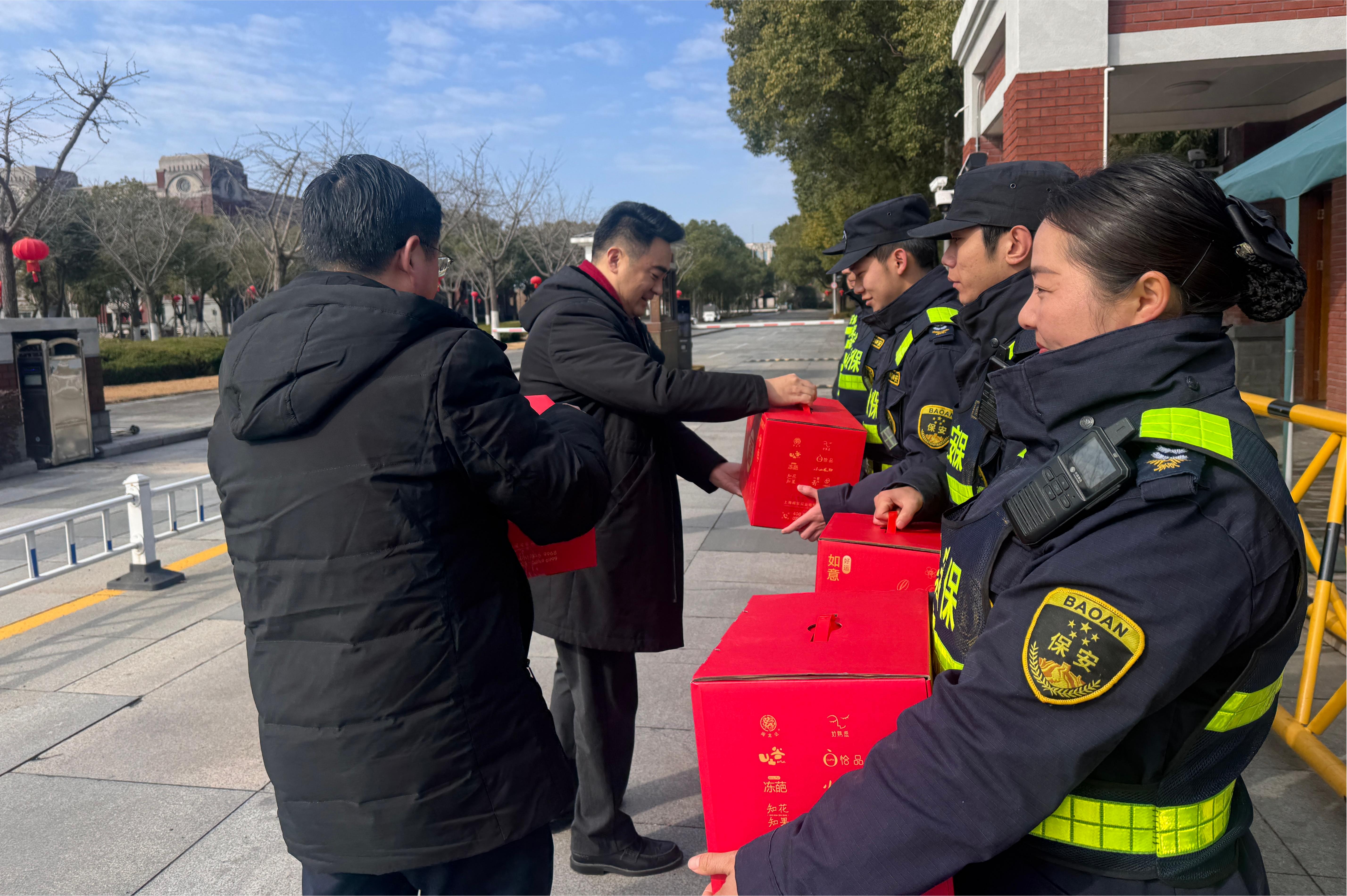 “给大家拜年,大家都辛苦了!假期的校园保障仰仗大家了!”王宏舟一行先后来到松江校区龙源路校门、明德楼餐厅、综合事务楼和地下管线施工区域临时会议室,以及长宁校区万航渡路门岗、河西食堂和同仁楼,看望保安、厨师、保洁、物业、施工师傅等一线工作人员,感谢大家甘于奉献为春节华政园提供好坚实保障。同时,王宏舟一行也为寒假留校学生送上新春礼包并座谈交流,了解他们的学习和生活情况,现场调研本科生对于学校有组织实习实践的想法和建议,为大家的各类备考和实习就业准备加油鼓劲,还叮嘱大家要与家人保持联系,度过一个平安喜庆的春节。