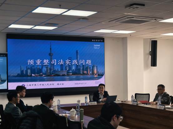 4月1日,我校国际金融法律学院、经济法学院和中国法治化营商环境研究院联合举办第四期三中院-华政科研创新合作平台系列活动,邀请上海市第三中级人民法院审判委员会专职委员潘云波作“预重整司法实践问题”讲座。上海市第三中级人民法院执行局局长吴炯,上海市法学会破产法研究会常务副会长、校党委常委杨忠孝教授,国际金融法律学院特聘副研究员张翔宇,中国法治化营商环境研究院客座研究员郭俊等专家学者出席讲座,国际金融法律学院副院长梁爽教授主持。