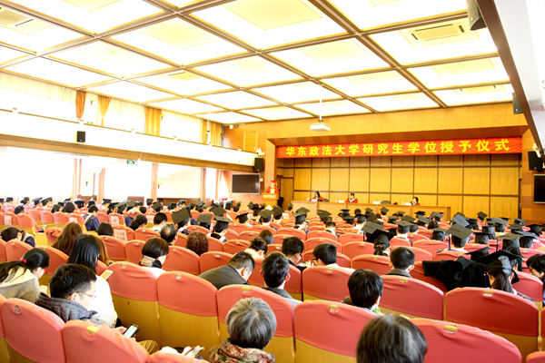 3月25日下午,2015年下半年度研究生学位授予仪式在长宁校区交谊楼报告厅举行。校长叶青,副校长顾功耘、林燕萍,导师代表二十余人,以及我校负责研究生教育的相关老师、教学秘书、辅导员参加了学位授予仪式。仪式由研究生教育院院长唐波主持。