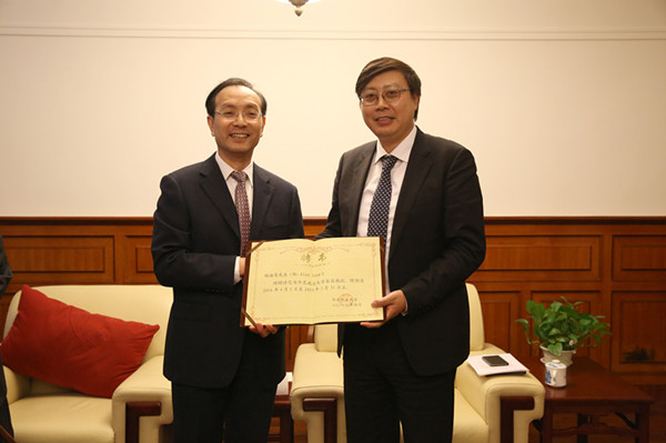 随后,叶青为霍克先生颁发了我校“荣誉教授”证书和律师学院“名誉院长”聘书,为杨海荣先生颁发了我校“客座教授”聘书。叶青表示,感谢霍克先生、杨海荣先生接受我校的聘请,欢迎二位加入华政的大家庭,愿今后经常来访华政,与我校师生进行交流。(国际交流处)