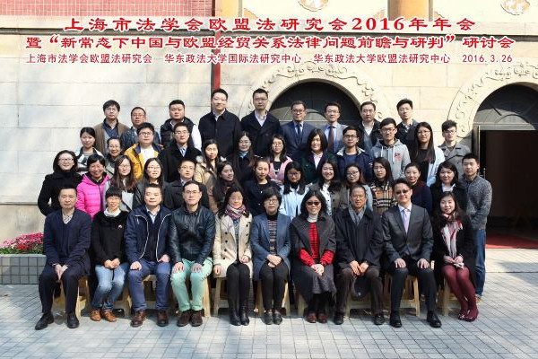 3月26日上午,由上海市法学会欧盟法研究会主办、我校国际法研究中心和欧盟法研究中心承办的上海市法学会欧盟法研究会2016年年会暨“新常态下中国与欧盟经贸关系法律问题前瞻与研判”研讨会在长宁校区交谊楼圆桌会议室举行。淡江大学欧洲研究所所长陈丽娟教授、中国社科院欧洲研究所叶斌副研究员、锦天城律师事务所合伙人潘建彰律师,我校副校长林燕萍教授、国际法学院副院长李伟芳教授,以及来自上海社科院法学所、上海交通大学、同济大学、上海对外经贸大学等相关高校和研究机构的专家、学者参加会议。