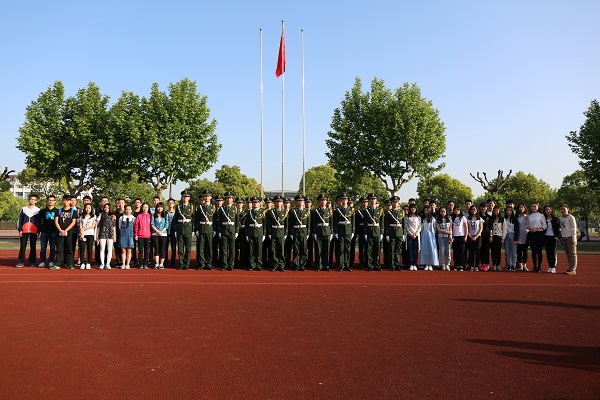 6点35分,庄严的升旗仪式正式开始。由30名国防生组成的国旗护卫队迈着整齐有力的步伐,护送国旗入场。在威武雄壮的国歌声中,鲜艳的五星红旗冉冉升起、随风飘扬。全体师生行注目礼,寄托对祖国的热爱和祝愿。