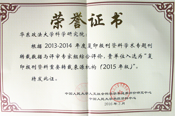 由中国人民大学人文社会科学学术成果评价研究中心与中国人民大学书报资料中心联合研制的《2015年度复印报刊资料转载指数排名研究报告》和《2015年度复印报刊资料重要转载来源机构》两项成果,旨在客观反映中国人文社科学术期刊、教学科研机构的学术研究水平和状况,是评价论文、作者、期刊、机构水平和影响力的重要参考指标,受到了社会的广泛关注和高度重视。(科学研究院)
