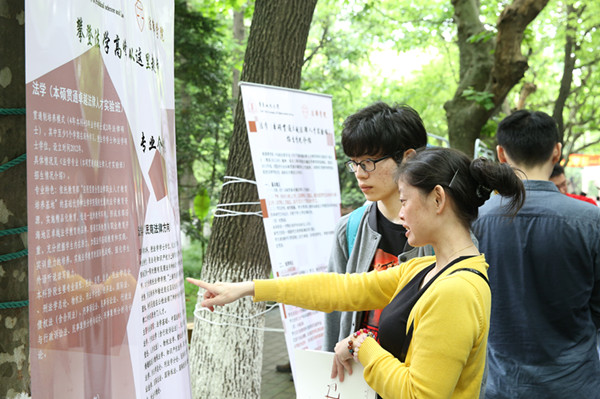 招生咨询会现场,学生和家长踊跃提问、现场气氛热烈。学生处以及各学院精心布置展位,树立起了大幅展板展示学院特色,并将专业的课程设置、海外交流、毕业生就业等详实的数据印制成精致的宣传海报和宣传手册,方便他们全面了解我校的有关信息;不少学院的领导、专业教师和学生志愿者就考生和家长关于专业的培养计划、教学特色和就业去向等具体问题面对面作了详细解答;招生办公室就我校今年的招生计划、招生政策、志愿填报、录取原则等内容与考生和家长进行了交流。