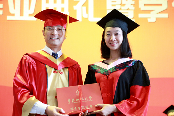 叶青校长为博士毕业生颁发学位证书