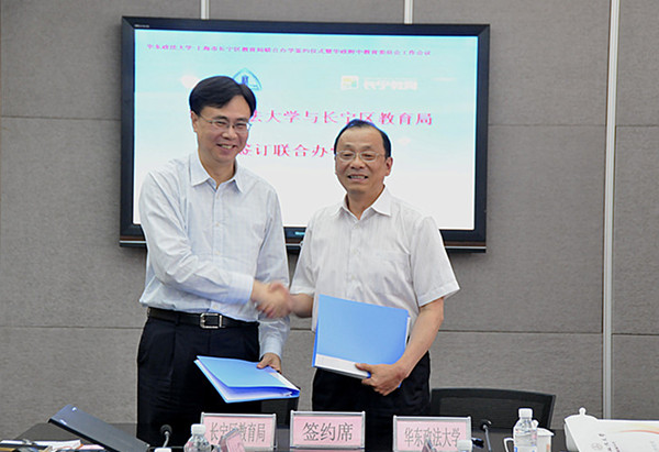 应培礼、姚期分别代表双方签订联合办学协议。根据协议,双方将继续以华政附中为合作基地,在教育实践与改革、教育科研、招生工作等方面进行更深层次的合作。长宁区优质中等教育资源与优质高校教育资源的成功对接,将进一步增强华政附中的软实力,促进华政附中成功创建上海市特色学校,为华政附中的高位持续发展创造良好的条件。