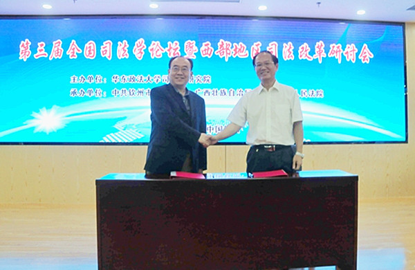 6月24日至25日,由我校司法学研究院主办,广西壮族自治区钦州市政法委、钦州市中级人民法院承办的“第三届全国司法学论坛暨西部地区司法改革研讨会”在钦州市隆重举行。来自最高人民法院,最高人民检察院,广西壮族自治区高级人民法院等地方法院,华东政法大学、中国人民大学、中国政法大学等高校及人民出版社、《法制与经济》杂志社等单位的70余名专家、领导参加论坛,