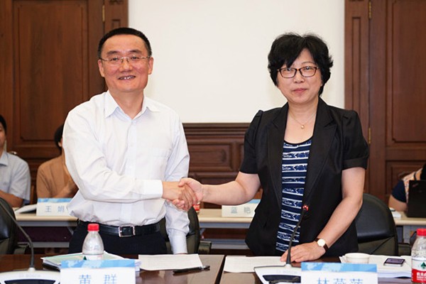 林燕萍代表我校外国法查明中心与上海市公证协会代表签订了开展外国法查明的合作协议书。
