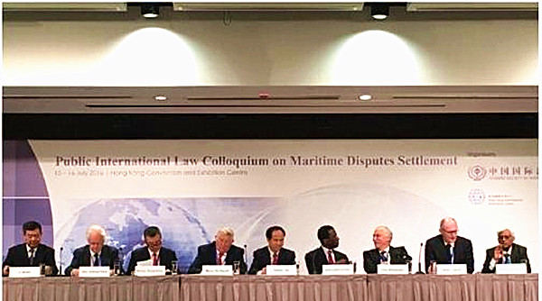 715,由香港国际仲裁中心与中国国际法学会主办的海洋争端解决国际法研讨会在香港会展中心开幕。研讨会为期两天,来自中国、美国、澳大利亚、法国等10多个国家和地区的210多位国际法和海洋法专家学者,在为期两天的研讨会上围绕海洋法及海洋争端解决机制等主题进行研讨交流。全国政协副主席董建华、中国外交部条约法律司司长徐宏、国际法院中国籍法官薛捍勤、联合国国际海洋法法庭法官高之国、中国国际法学会会长李适时、香港国际仲裁中心主席郑若骅等专家出席会议。我校国际航运法律学院包毅楠老师应外交部条法司和中国国际法学会邀请参加会议,并同德国波恩大学塔尔蒙教授、中美研究中心执行主任洪农教授、前国际法院法官科罗马教授等与会专家就低潮高地的领土主权、群岛制度的适用等问题进行了提问和交流。(国际航运法律学院)