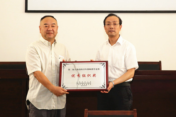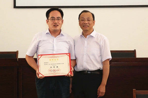 唐波、闵辉分别宣读我校参加上海市第二届青年教师教学竞赛成绩和2016年我校从事教育工作30周年教师名单。校领导为他们颁发证书。