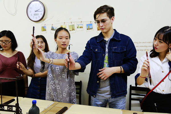 此外,活动还吸引了不少外国留学生和少数民族学生参与,各民族、各种族学生汇聚在工作室,其乐融融,共同领略中华优秀传统文化,共度中秋佳节。