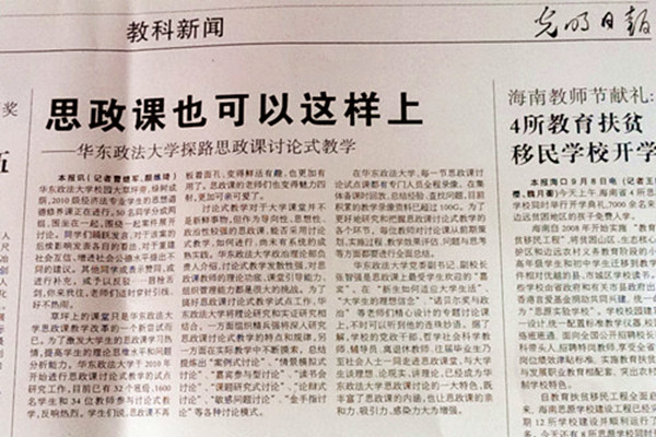 《光明日报》对我校“思政课”讨论式教学法进行专题报道