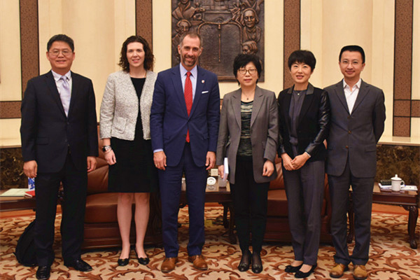 10月13日,美国圣约翰大学法学院院长Michael A. Simons、副院长Sarah Kelly、法学院教师Joshua Alter、资深顾问Larry Xu一行访问我校松江校区。我校副校长林燕萍、国际交流处处长夏菲、法律学院副院长(主持工作)金可可等与对方进行了会谈。?xml:namespace> 美国圣约翰大学法学院院长一行与我校代表合影 林燕萍回顾了我校与圣约翰大学法学院自2015年签订备忘录起所开展的师生交流与互访情况,并对Michael A. Simons院长一行的再次到来表示热烈欢迎。她表示,我校与圣约翰大学法学院已建立了良好合作,希望能通过法学院与圣约翰大学其他学院建立合作,推动我校商学院、政治学与公共管理学院国际化工作的发展。Michael A. Simons介绍了圣约翰大学新近开设的法律硕士项目语言预备课程,并表示圣约翰大学法学院已经接待了华政访问教师、访问学生各一名,对华政师生出色的学术能力和语言水平印象深刻,愿意为推进两校校际合作牵线搭桥,期待两校建立更为全面深入的合作。 双方就圣约翰大学冬季游学项目及两校师生合作的其他方式进行了详细探讨。林燕萍代表我校向圣约翰大学在我校参与重点引智项目、为法律学院和国际金融法律学院学生授课的Joshua Alter教师颁发感谢证书,希望能继续获得圣约翰大学的师资支持。 会谈结束后,圣约翰大学法学院代表一行与我校法律学院学生座谈,就圣约翰大学法学院情况、美国法学院申请等事宜进行了讲解,并欢迎我校学生前往圣约翰大学学习交流。