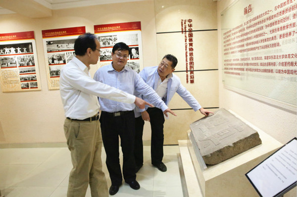 体育文化博物馆一期工程位于长宁校区体育室一楼,主要围绕“中华全国体育协进会的历史沿革”“圣约翰大学体育文化”“奥运史话”三个主题,陈列了130余件珍贵藏品,充分展示了奥运历史文脉和学校体育历史内涵。根据校园建设规划,学校还将在长宁校区26、27号楼中华全国体育协进会原址建设体育文化博物馆,并通过雕塑、铭牌、图文等方式,将校园打造成具有浓厚体育文化意蕴之地。