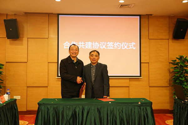 中国社会科学院马克思主义研究院党委书记、院长邓纯东(右)和我校党委副书记应培礼(左)共同签署合作共建协议