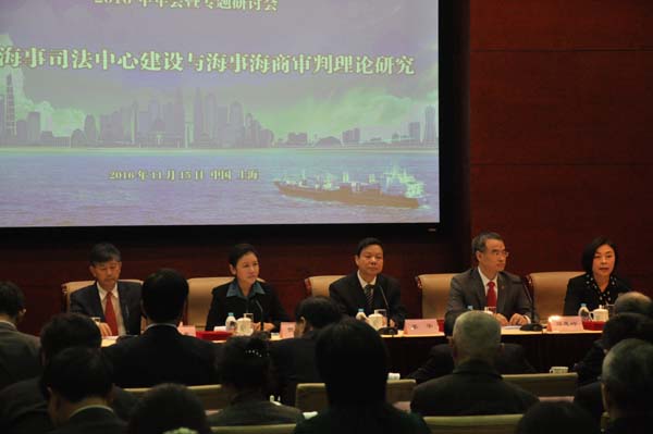 11月15日,中国审判理论研究会海事海商审判理论专业委员会2016年年会在上海海事法院召开。本次年会主题为“国际海事司法中心建设与海事海商审判理论研究”,最高人民法院有关部门负责人,上海市高级人民法院领导,全国海事审判系统、地方法院、政府相关部门、上海市法学会、高等院校、中国远洋海运集团等单位以及其他法律服务组织的代表约110人参加会议。最高人民法院副院长贺荣,上海市委常委、市委政法委书记姜平出席会议并讲话。我校副校长林燕萍教授、国际法学院曲涛副教授和张虎博士参加会议。