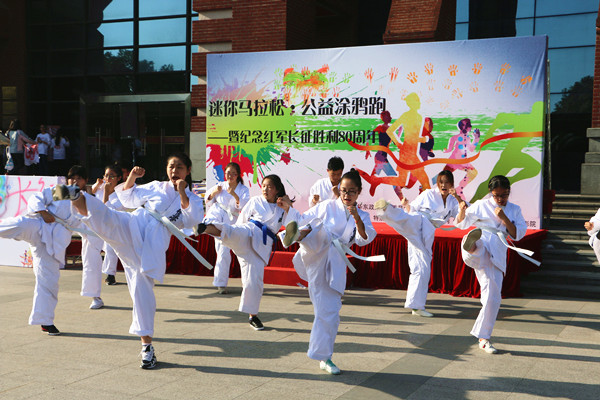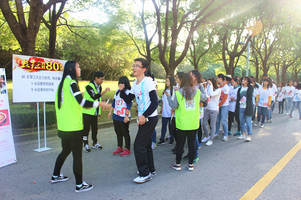 为大力弘扬长征精神,讴歌党的光辉历程,发扬党的优良传统,磨炼青年意志品质,促进青年学生身心健康和全面发展,11月11日,我校团委组织开展纪念中国工农红军长征胜利80周年迷你马拉松·公益涂鸦跑活动,共吸引500余名同学报名参加。