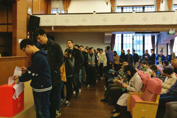 11月16日下午,我校长宁、松江两校区分别举行区人大代表换届选举大会。两校区共设立两个主会场、151个投票站。参加投票选民共计13911人,参选率高达97.85%,选举产生了我校长宁、松江两区人大代表。