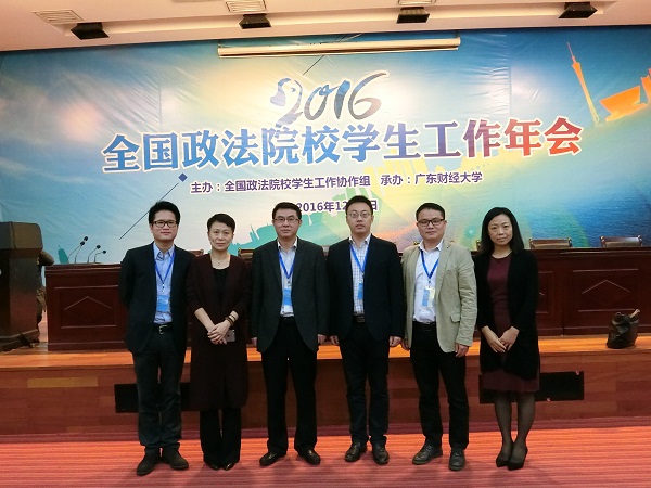 12月2日至4日,我校党委副书记、副校长闵辉率学生工作队伍一行7人赴广州参加2016年全国政法院校学生工作年会。本届年会由全国政法院校学生工作协作组主办、广东财经大学承办,来自全国9所政法类院校的代表出席。