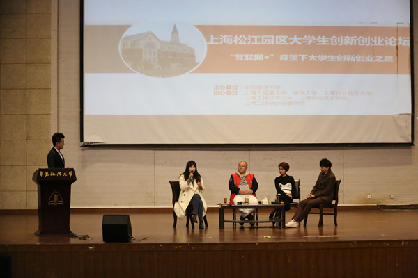 上海松江大学园区大学生创新创业论坛由我校发起并主办,上海外国语大学、东华大学、上海对外经贸大学、上海工程技术大学、上海视觉艺术学院、上海立信会计金融学院协办。论坛积极响应了国家提出的“大众创业、万众创新”发展战略,其宗旨是希望通过搭建青年企业家与当代大学生之间对话交流的渠道和平台,启迪思想,加强引领,营造良好的创新创业育人环境,鼓励大学生积极参与创新创业。