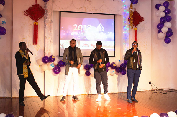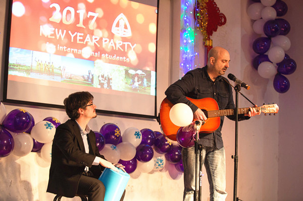 近日,由国际交流处(国际文化交流学院)主办的华东政法大学2017年留学生新年联欢活动在松江校区团学活动中心举行。校团委书记陈赛金、教务处副处长尹天松、法律学院党委副书记汤君、政治学与公共管理学院党委副书记张建栋、各学院辅导员代表和国际交流处(国际文化交流学院)工作人员与来自俄罗斯、澳大利亚、韩国、哈萨克斯坦、斐济、刚果(金)、塞舌尔等世界各地100多名留学生一起联欢。