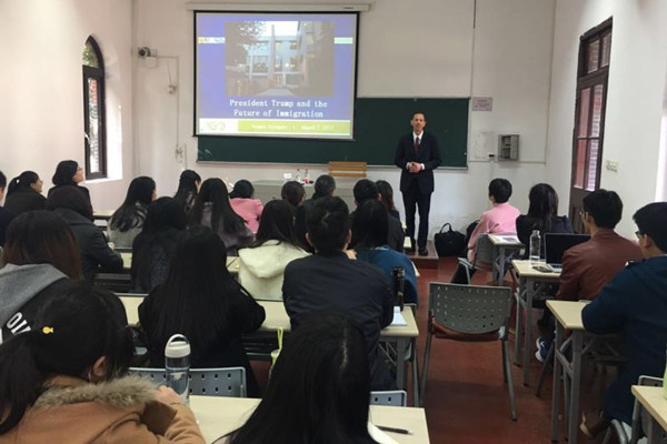 Robert A. Schapiro此行还就美国新任总统特朗普就职后的美国移民政策等话题与我校法律学院师生进行了交流。现场提问踊跃、反响热烈,受到了我校师生的欢迎。