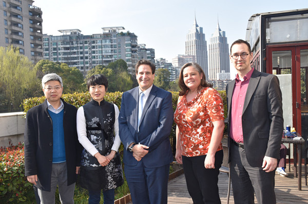 美国福特汉姆大学法学院院长Mathew Diller一行与夏菲、赖锦盛合影