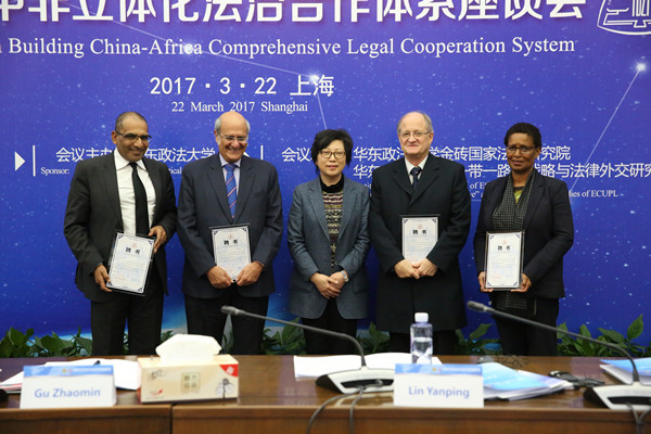3月22日,“构建中非立体化法治合作体系座谈会”在我校长宁校区举行。座谈会由中国法学会指导,我校主办,华东政法大学金砖国家法律研究院和“一带一路”战略与法律外交研究院承办,旨在共同研究推进中非联合仲裁职业发展,响应国家“一带一路”战略,落实《中非合作论坛——约翰内斯堡行动计划》具体举措,更好服务我国企业“走出去”,维护其在非合法权益,宣传中国特色社会主义法治文化和法律制度。中国法学会对外联络部主任谷昭民,上海市国际贸易促进委员会副会长、上海国际经济贸易仲裁委员会(上海国际仲裁中心)副主任李志刚,上海国际经济贸易仲裁委员会(上海国际仲裁中心)副秘书长黄文,上海市法学会秘书长毛坚平,深圳国际仲裁院院长刘晓春等中方嘉宾和我校校长叶青、副校长林燕萍,以及来自中非联合仲裁中心约翰内斯堡中心和肯尼亚内罗毕国际仲裁中心的非洲代表等外方嘉宾出席座谈会。我校党校办、国际交流处、国际法学院、金砖国家法律研究院、“一带一路”战略与法律外交研究院等部门负责人和师生参加座谈会。开幕式由林燕萍主持。