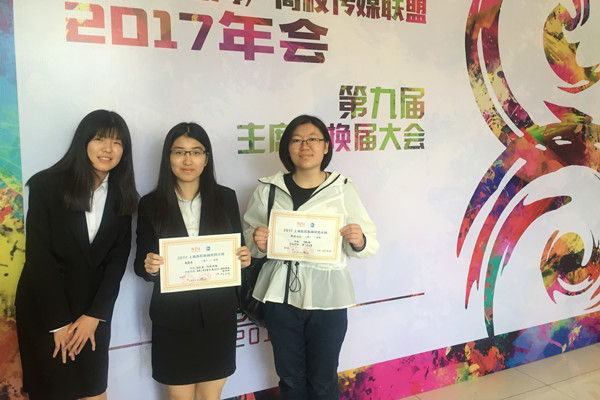 本次大会对“2017中国高校新闻扶持计划”获奖作品进行了表彰。新视传媒(集团)记者刘东珠的《争?本无争》获文字类新闻评论一等奖,记者沈依逸、倪婷珺陶的《坐标-我在华政,遇见白天,遇见黑夜,遇见你》获新媒体类作品二等奖。会议选举产生了中国(上海)高校传媒联盟第九届主席团,我校人文学院朱懿菲同学当选主席团成员。