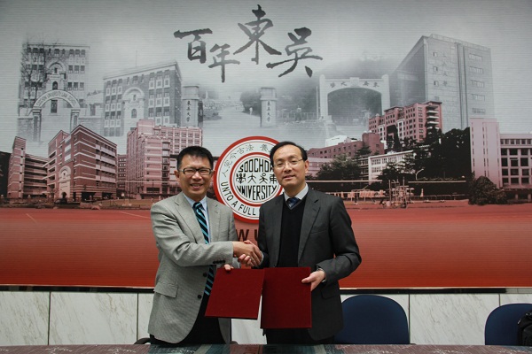 28日上午,在东吴大学外双溪校区举行两校合作项目签约仪式暨交流座谈会。东吴大学校长潘维大历数了两校近年来的合作项目与成效,对叶青一行在双方深化合作的关键时期的到访表示欢迎,希望双方进一步推进战略合作。他介绍了东吴大学近期的发展战略,并表示拥有百年历史的东吴大学具备厚实的教学传统和崇法务实的办学精神,致力于打造具有多元特色的通识教育体系和跨领域整合的课程体系,注重承接优秀传统文化,强化品德教育,努力实现全人教育的宗旨。
