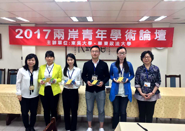 近日,我校与台湾东吴大学联合主办的“2017年两岸青年社会科学学术论坛”在东吴大学外双溪校区召开。东吴大学副校长董保城、我校副校长林燕萍代表两校互赠礼物并致开幕词。