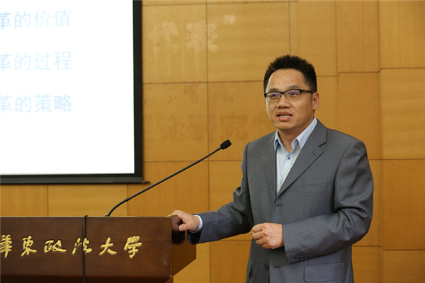 教务处处长王月明介绍了学校法治人才培养改革的实践与探索情况,并指出在今后教学工作中,学校将进一步深化与实务部门的合作,优化实务课程、模拟法庭和法律助理等项目,为学生全面发展提供良好的成长环境。