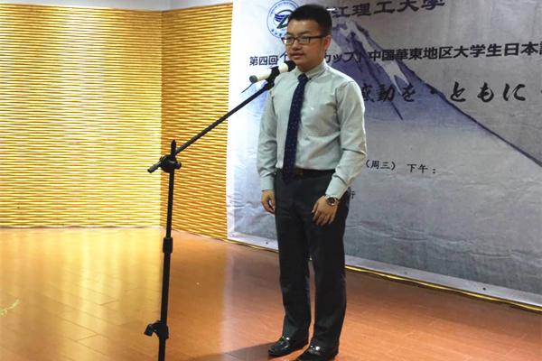本届比赛主题为“共创感动”,分为主题演讲、诗歌朗诵及评委提问三个环节,吸引了众多日语学界的知名人士、日本工商企业界人士、多所高校日语专业师生前来观战助阵。在我校外语学院马燕菁、张浩帆及日语外教驹崎达也等老师的悉心指导下,张昊在决赛场上凭借地道的发音、充满感情的朗读和流利的答辩最终获奖,并成为首位在本科二年级阶段获得该重要奖项的日语专业学生。