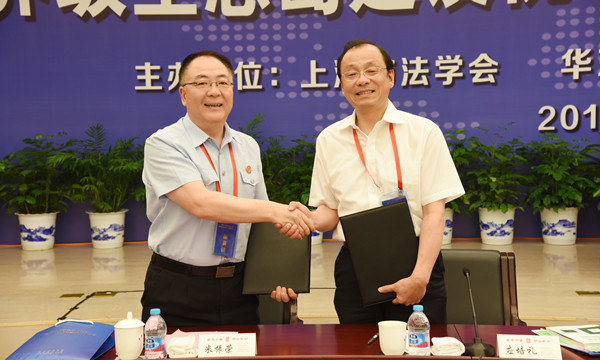 6月6日下午,我校与崇明区人民法院合作协议签署仪式暨“崇明世界级生态岛建设视域下环境资源司法保护研讨会”在崇明新城会议中心召开。崇明区委书记唐海龙,市高级人民法院党组成员、副院长茆荣华,崇明区委常委、政法委书记梅云平,崇明区人大常委会副主任顾德昌,市法学会党组成员、专职副会长施基雄,崇明区人民法院党组书记、院长米振荣,以及我校党委副书记、纪委书记应培礼,经济法学院博导肖国兴教授,社会协同合作处副处长王美丽等出席。会议由崇明区人民法院党组成员、副院长陈昌主持。