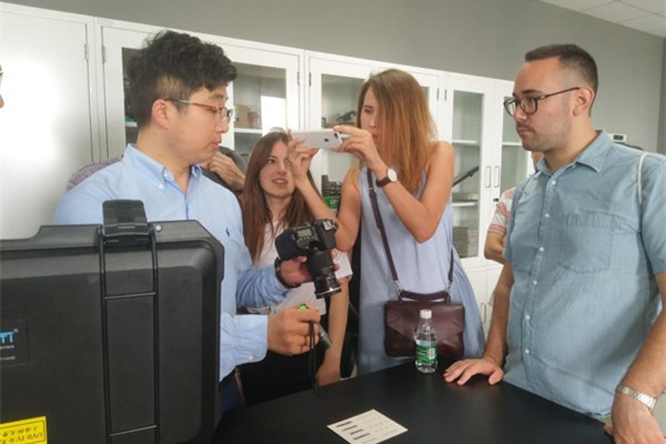 早上9点,留学生从长宁校区出发前往松江校区,第一站便来到刚刚布展完毕的李昌钰法庭科学博物馆。刑事司法学院实验室主任、博物馆常务副馆长郑映宇热情接待了留学生一行,并详细介绍了李昌钰博士的人生经历和职业生涯。馆中,李昌钰博士使用过的实验仪器、鉴定过的物证、就读大学时的课堂笔记让大家感受到了这位华人神探的严谨和睿智。郑映宇还带领大家参观了刑事司法学院教学实验室,一套套真实的教学设备、一台台世界先进的精密仪器,引来了大家的纷纷赞叹。