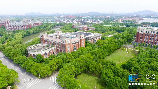 图为华东政法大学松江校区明珠楼和教学楼。新华网 罗沛鹏 摄