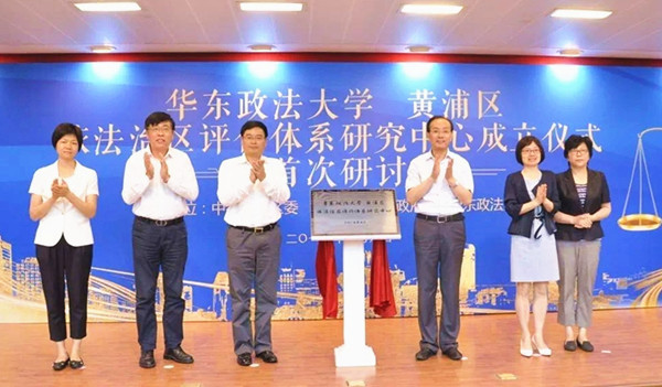 叶青与汤志平为“华东政法大学 黄浦区依法治区评价体系研究中心”揭牌