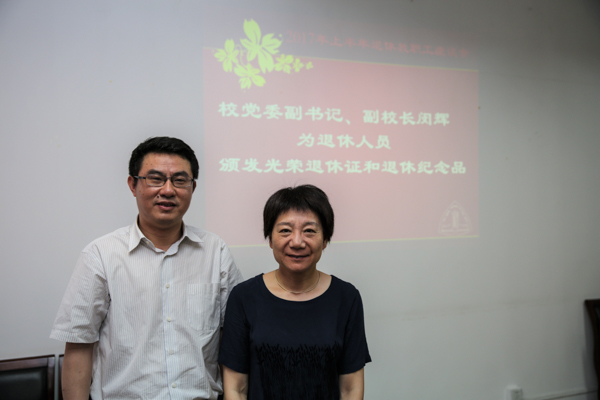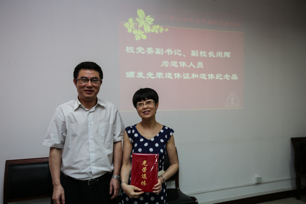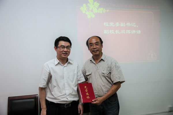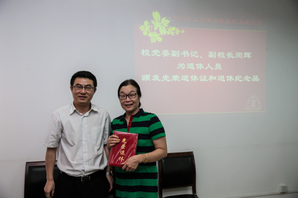 7月6日下午,我校2017年上半年教职工光荣退休仪式在长宁校区举行。校党委副书记、副校长闵辉,退休教职工,组织部、离退休工作处和退休教职工所在部门、学院负责人出席仪式。仪式由人事处处长戴莹主持。