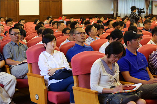 叶青代表学校党政领导向暑假期间坚守岗位、不辞辛劳、默默奉献的教职员工表示感谢。他强调,要实心实意对接落实国家重大教育战略布局,有条不紊地贯彻学校“十三五”发展规划。他指出,一要深入贯彻全国和上海高校思政工作会议精神,把三全育人理念落到实处。要加强全校思想政治工作顶层设计,充分明确学校思政工作的指导思想、战略目标、根本任务和重点环节,相关部门和学院要有计划、有方案、有步骤地落实学校的整体工作任务;要集中力量推进马克思主义学科和马克思主义学院建设,为切实做好大学生思想政治工作奠定坚实的理论基础和学科基础。二要牢牢把握国家“双一流”建设重大机遇,加快促进学科发展。继续以“高峰”“高原”学科建设计划为引导,抓紧论证通过《学科管理办法》,规范学科建设,促进学科发展;探索犯罪改造有关领域人才的联合培养机制;在确保法学学科水平不断发展的基础上,积极整合资源,促进马克思主义理论学科更快更好地发展;进一步加紧加快公共管理一级学科博士学位点建设,相关部门要协同对接,根据评估指标体系,扎实做好新设学科三年复评工作。三要精准对接上海科创中心建设重大需求,加快科技创新与成果转化。要发挥学科人才优势,主动对接科创中心建设;关注科研管理规范化水平提升,完善智库成果“孵化”机制,不断提高对外平台服务能力。