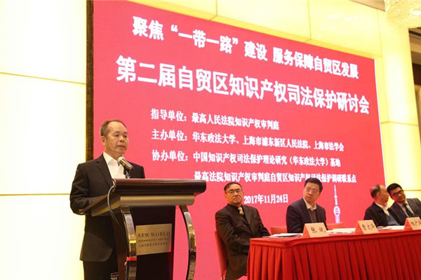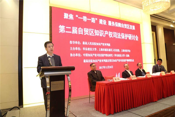 在中国(上海)自由贸易试验区成立四周年之际,11月24日,“聚焦‘一带一路’建设 服务保障自贸区发展”第二届自贸区知识产权司法保护研讨会在沪举行。本次论坛由华东政法大学、上海市浦东新区人民法院、上海市法学会共同主办,中国知识产权司法保护理论研究(华东政法大学)基地、最高法院知识产权审判庭自贸区知识产权司法保护调研联系点协办。我校党委书记曹文泽教授和最高人民法院知识产权庭副庭长林广海、上海市高级人民法院副院长郭伟清、上海市法学会常务副会长林国平、上海市浦东新区人民法院院长张斌出席并致辞。来自全国法院系统、知名高等院校、行政机关、行业协会以及相关研究机构的代表100余人参加会议。