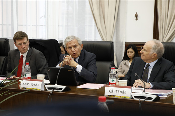 杰弗里·沃斯爵士代表英格兰和威尔士司法代表团向我校致谢,并表示英格兰和威尔士司法界一直以推动法治建设、服务商业群体为己任,近年来在金融纠纷解决机制主要有三大进展:设立商业和财产法院、设立高度专业化解决金融争议的金融庭、引入网络争议解决机制等。杰弗里·沃斯爵士表示,信息科技、智能技术是未来发展趋势,对司法领域也影响深远,期待通过中英专家对金融纠纷解决机制进行思想交锋,可以找到合作领域,共同解决人类面临的问题。
