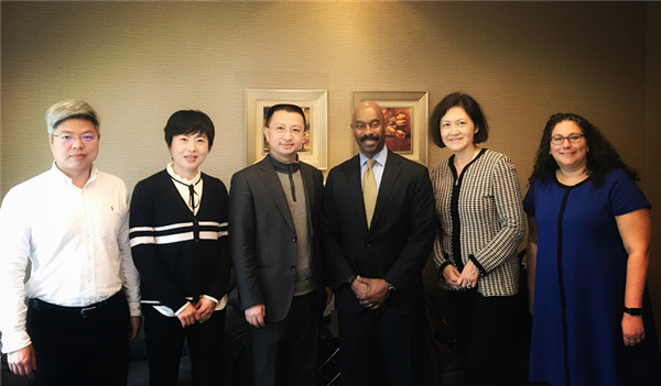 3月14日,美国艾默里大学法学院院长詹姆斯·休斯(James B. Hughes, Jr.)、业务主管菲比·史蒂文生(Phoebe Stevenson)、研究生项目副主任杰西卡·迪沃肯(Jessica Dworkin)访问我校,并与我校法律学院院长金可可,国际交流处处长夏菲、副处长赖锦盛等交流会谈。