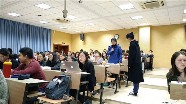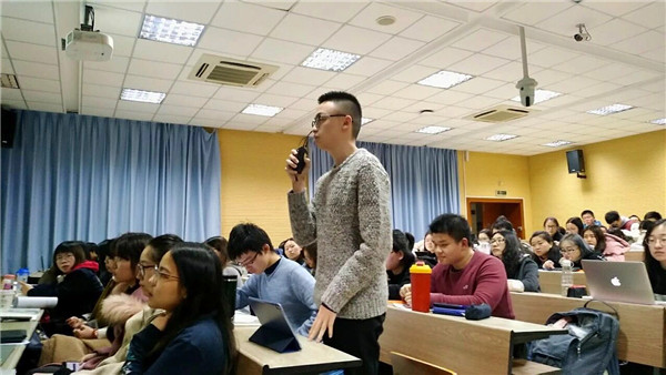 首堂国际化课程,时间分配为45分钟授课和15分钟交流讨论。课堂别出心裁地实行学生“自治”,即由“毛遂自荐”的学生担任主持人,引导课堂互动。在讨论环节,同学们踊跃举手发言。“区块链”“银行债务”“两种法系对于合同法的解读”等相关话题,成为大师与学生互动的桥梁。查尔斯对每个问题都详细作答,以至于交流环节延时至半小时。